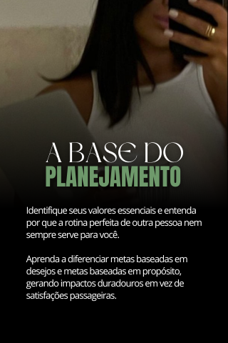 No 365 Com Propósito, você aprende a construir um planejamento de vida alinhado aos seus valores mais profundos, transformando metas em resultados consistentes.